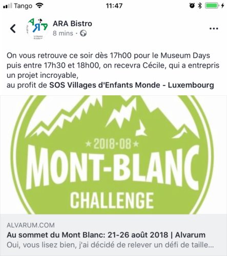 Les dons peuvent se faire via cette page (c'est 100% sécurisé) ou sur le compte de SOS Villages d'Enfants Monde LU65 1111 0050 0053 0000, CCPL LU LL, avec la mention "Mont Blanc Challenge 2018".