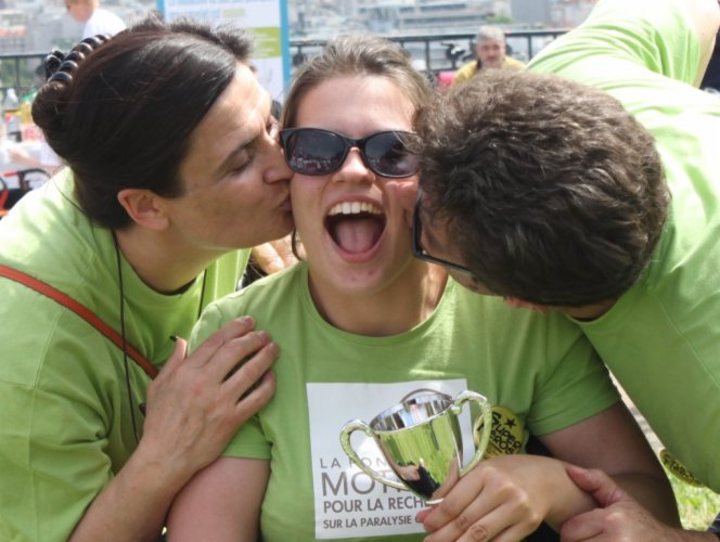 Chers Amis,Le 21 juin dernier Camille a participé, en "joélette", à la Course des Héros Paris, édition 2015 et est montée sur le podium pour recevoir le Prix du Meilleur Collecteur individuel ! En effet, grâce à Vous nous avons collecté cette année, en comptant l'abondement de BPI, 30 000€ qui vont permettre d'aider la Fondation Motrice à financer des projets de recherche sur la Paralysie Cérébrale, 1ère cause de handicap moteur chez l'enfant avec une naissance sur 450 concernée. Vos dons vont notamment contribuer à financer les meilleurs des 53 projets candidats au double appel à projet de recherche, général et dédié spécifiquement à la rééducation, que le Conseil Scientifique de la Fondation Motrice va sélectionner. Un immense merci pour votre soutien fidèle, généreux et amical. Nous vous donnons rendez-vous en juin 2016 et pourquoi pas pour aider à piloter la joélette de Camille ! Avec toute notre amitié. Famille Chastenet de Géry