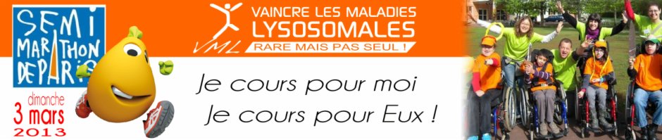 Alors en ce début d'année je vous invite à faire une bonne action: soutenir "Vaincre les Maladies Lysosomales", une association qui collecte des dons pour améliorer la vie de personnes touchées par 53 maladies génétiques rares et me permettre de participer au Semi-Marathon de Paris aux couleurs de l'association ! Car oui, il y a un défi dans le défi....si je ne rassemble pas suffisamment de fonds (350 € minimum...) pour l'association je ne serai pas "digne" de porter leur "couleurs" et je n'obtiendrai pas de dossard ....et sans dossard pas de Semi-Marathon, alors mobilisez vous !!! Je compte sur vous, on compte sur vous et je cours pour vous.