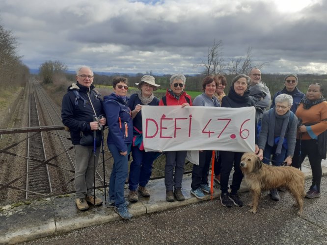 La marche du groupe AFAJ ROANNE pour le lancement du DEFI 47.6  s''est déroulée dans la bonne humeur et sans pluie! Notre objectif: 12 marcheurs, 120 km et 120 euros.