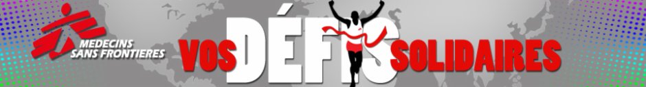 Tout au long de ma préparation et pour participer à ce défi,je vous suggère de faire un don à Médecins Sans Frontières ou de faire la promotion de mon initiative.