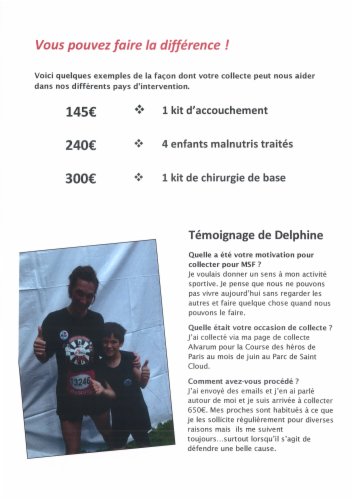 J'ai décidé de courir pour une bonne cause et soutenir "Médecins Sans Frontières" qui réalise un travail très important.