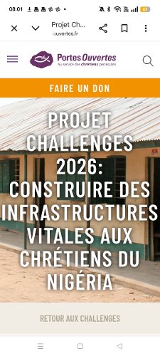 L'ONG Portes Ouvertes travaille dans plus de 70 pays pour soutenir les chrétiens qui manquent de liberté religieuse, un droit fondamental exprimé dans l'article 18 de la Déclaration Universelle des Droits de l'Homme, et souffrent d'oppression et de persécution. Les axes d'interventions de l'ONG : plaidoyer, développement socio-économique, acheminement de littérature chrétienne et la formation. http://www.portesouvertes.fr