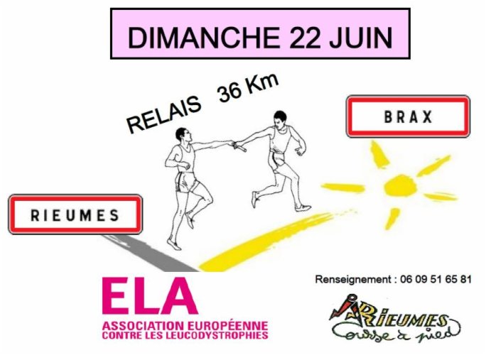 "Rieumes Course à Pied" organise, le 22 juin, une course relais en soutien à l'association ELA qui lutte contre les leucodystrophies. Le club a décidé d'ouvrir le 1er