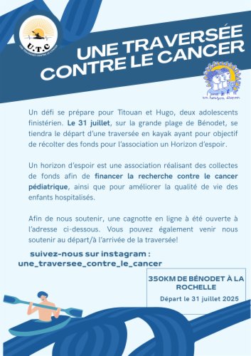 L'association Un Horizon d'Espoir créée en 2009 est basée à l'Île-Tudy, elle est gérée par des bénévoles,. Elle a pour buts de soutenir la recherche en oncologie pédiatrique et de participer à l'amélioration des conditions de vie de l'enfant et de l'adolescent hospitalisé. Les fonds sont soit envoyés au service de recherche en oncologie pédiatrique du Centre Léon Bérard à Lyon ou soit utilisés pour répondre à des demandes d'hôpitaux tels Morvan à Brest ou Laënnec et Gourmelen à Quimper