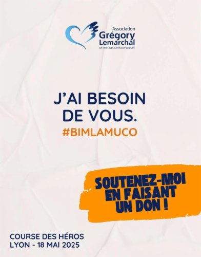 Vous êtes nombreux à connaitre mon engagement auprès de l'Association Grégory Lemarchal, qui lutte sans relâche pour améliorer la vie des personnes atteintes de la mucoviscidose. Cette année, j'ai décidé de me dépasser en participant à la Course des Héros qui aura lieu le 18 mai à Lyon, et qui est une belle aventure solidaire.