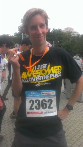 La somme à atteindre est de 400€. Toutefois, je propose un petit challenge histoire de pimenter le tout : Si j'atteins la somme minimale, je m'entraine pour courir le semi (21,1kms) en 2h comme je l'avais fait à Lille... Par contre, je m'engage à m'entrainer pour réduire ce temps de 3 minutes pour chaque pallier de 100€ atteints... Soit 1h57 pour le pallier 500€, 1h54 pour 600€, etc. (Bon par contre, je ne vais pas trop faire le malin non plus, ça sera difficile de descendre en dessous de 1h40 ^^)).