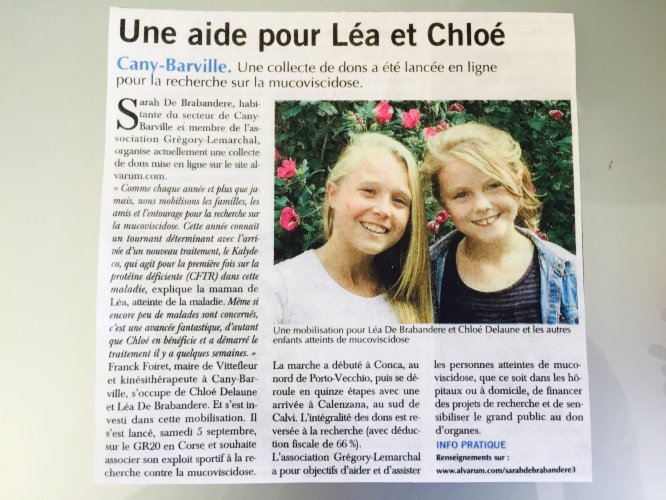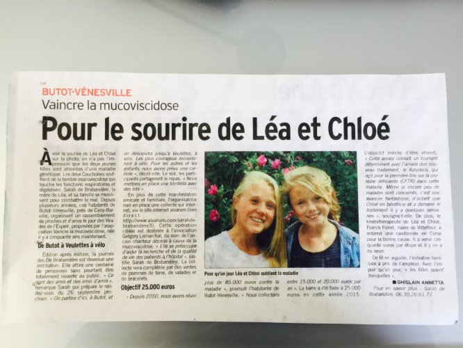 Nous comptons tous sur vous et en particulier Léa et Chloé ainsi que l'ensemble des malades et leurs familles.