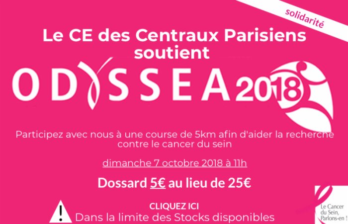 ODYSSEA, association de loi 1901, organise des courses/marches au profit de la lutte contre le cancer du sein. Depuis 2002, année de sa création, l'Association a mobilisé sur ses événements plus de 600 000 participants permettant de reverser 6,6 millions d'euros dans le domaine de l'accompagnement des patientes, de la prévention ou de la recherche. www.odyssea.info