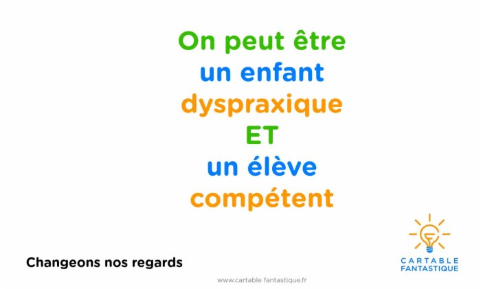 Le Cartable Fantastique met gratuitement à disposition de tous ceux qui en ont besoin les ressources scolaires et les outils qu'il crée pour favoriser l'inclusion des enfants porteurs de handicap et plus particulièrement dyspraxiques. Ce n'est pas parce que la mise à disposition est gratuite qe la conception, création, diffusion de ces outils n'a pas de coût ! Il faut chaque année boucler un budget important pour permettre à notre équipe de réaliser tout cela et d'accompagner les famillles et les enseignants.